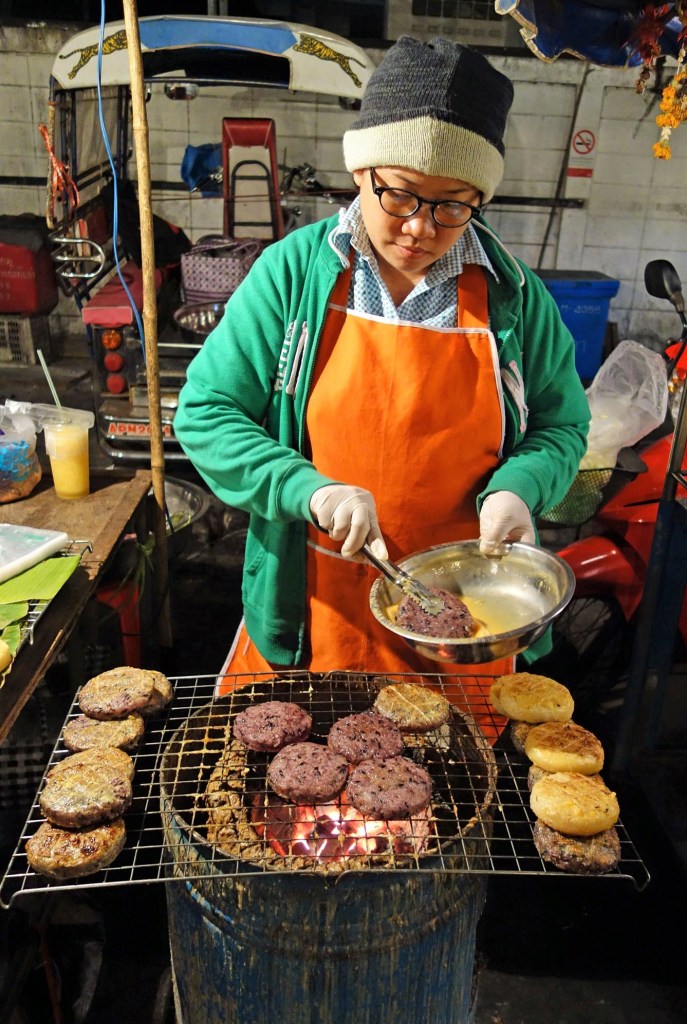 ウボンラチャタニの街を夜歩くとカオジーを焼いている露店をよく見かける