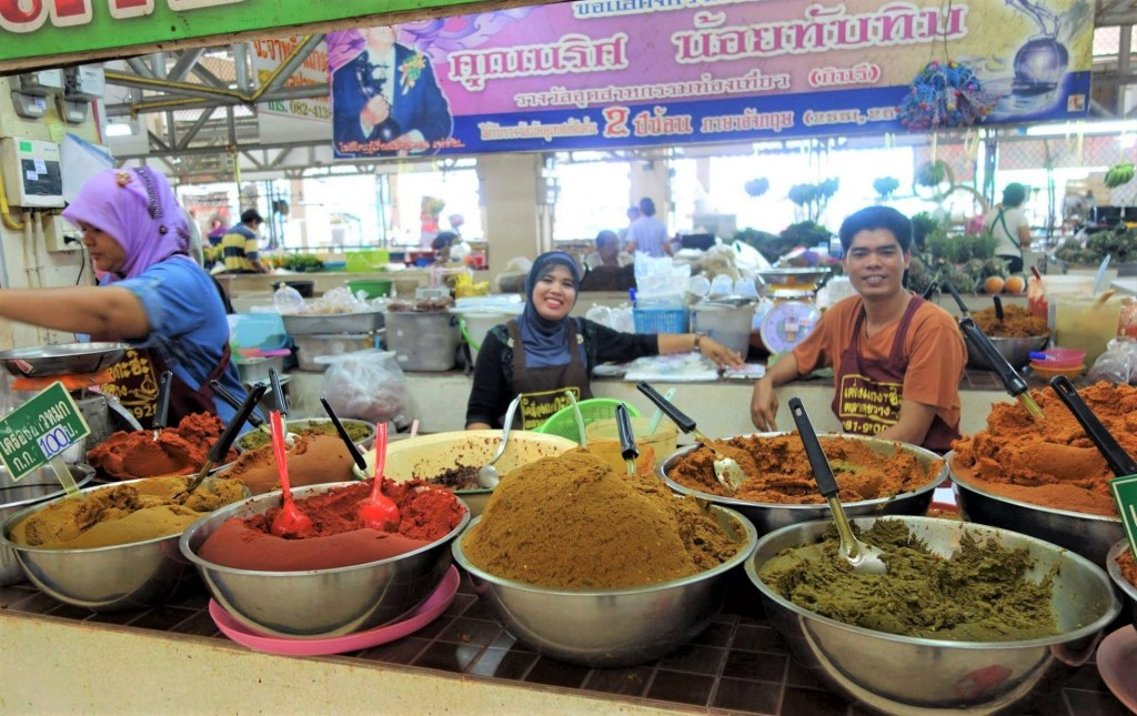 タイ南部ナコーンシータマラートの朝市で売られている味噌は、どうしてこんなにカラフルなのだろう。 しかも売っているのはイスラム教徒の人たちばかり。 イスラムの食文化と関係があるのだろうか。