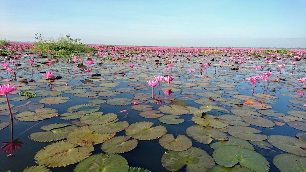 タイ東北部ウドンタニ市内から車で1時間ほど南東へ行ったところに、「タレーブアデーン」ทะเลบัวแดง(タイ語で赤い蓮の海)が広がっている。毎年12月から2月上旬にかけての早朝、湖面が紅いスイレンの花で埋め尽くされ、まるで夢の中にいるような幻想的な景色を見ることができる。