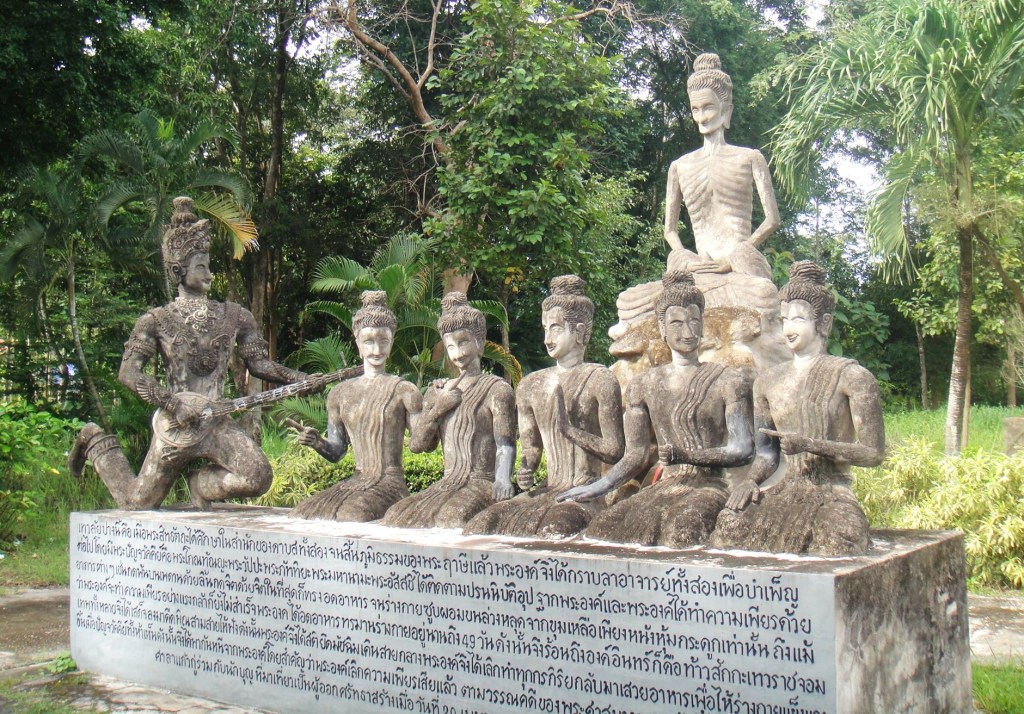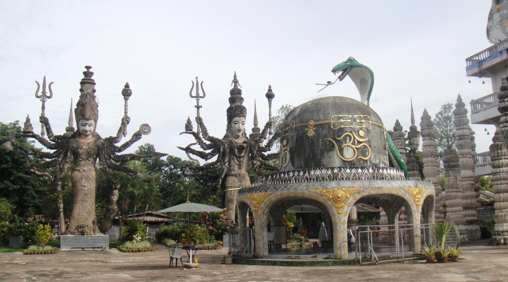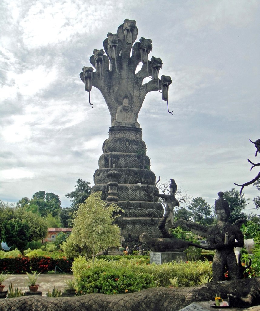 セメント像のいくつかは25mにも達し、中でも7頭のナーガの蛇に守られ瞑想する仏は圧巻である。