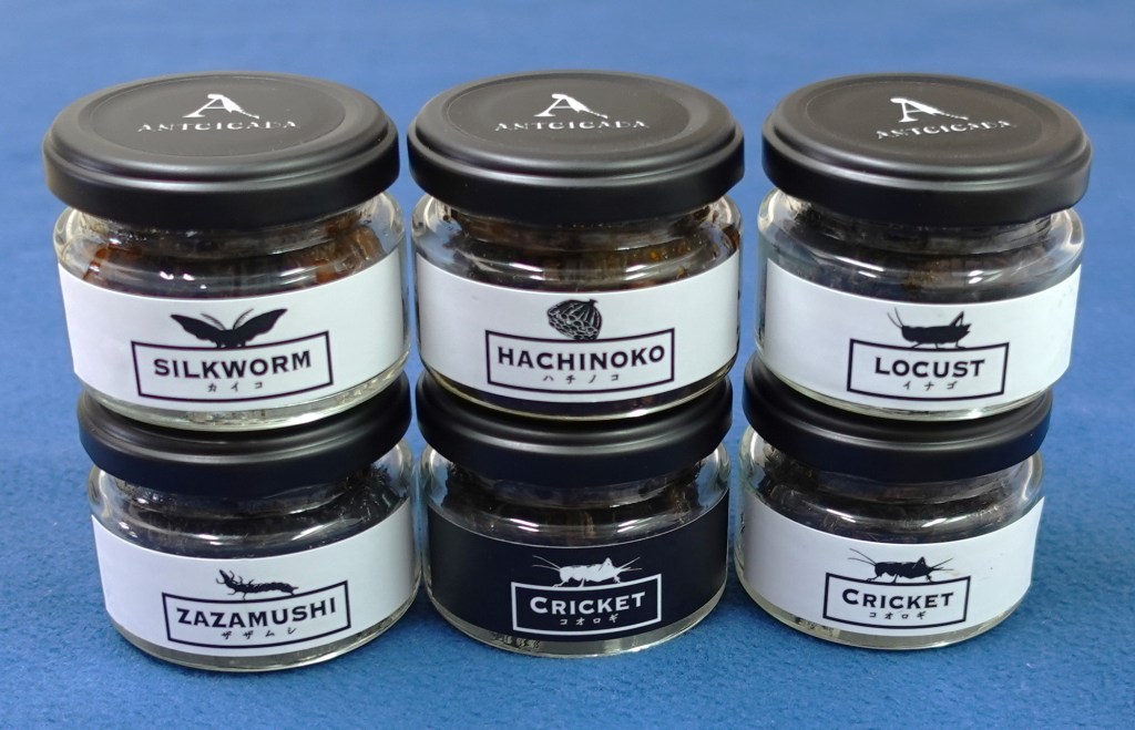 東京の昆虫食ANTCICADAのオンラインショップで「昆虫の佃煮コンプリートセット」を購入し、昆虫の佃煮6種類ハチノコ、ザザムシ、カイコ、イナゴ、フタホシコオロギ、イエコオロギを食べ比べた。