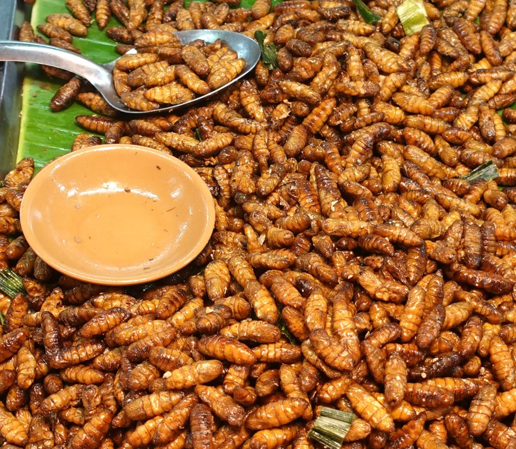 カイコの蛹、黒コオロギ、白コオロギの3種類が、チェンマイの昆虫食の基本形かも知れない。