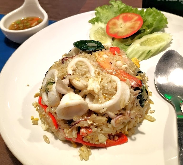 「イカとエビのトムヤム炒飯」 コンド1階の食堂にて