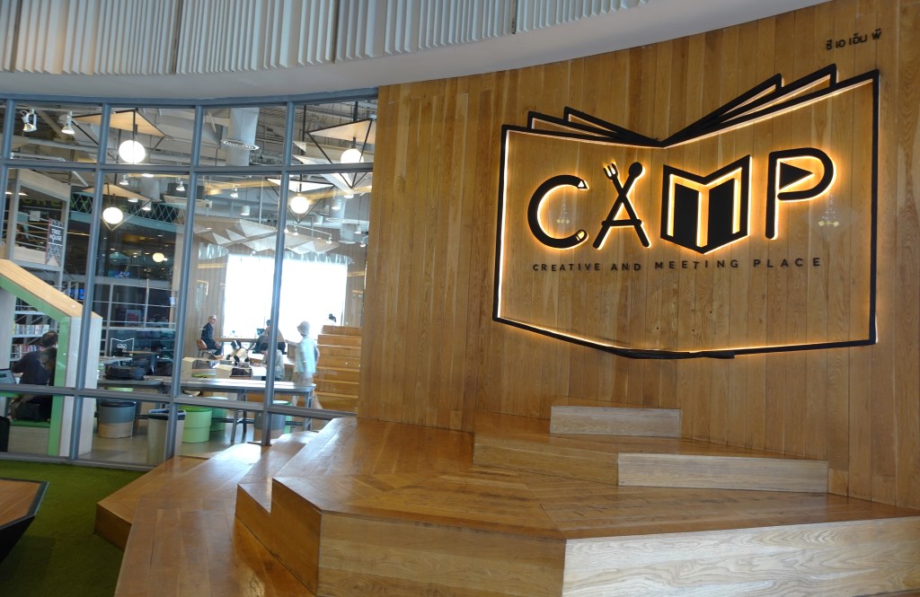 チェンマイの大型商業施設「MAYA」の最上階にもコワーキングスペースがある。「CAMP Creative and Meeting Place」 中に入ると左手に飲み物や軽食を注文するところがある。奥へ進むとパソコンを持ち込んで仕事をやっている欧米人が多い