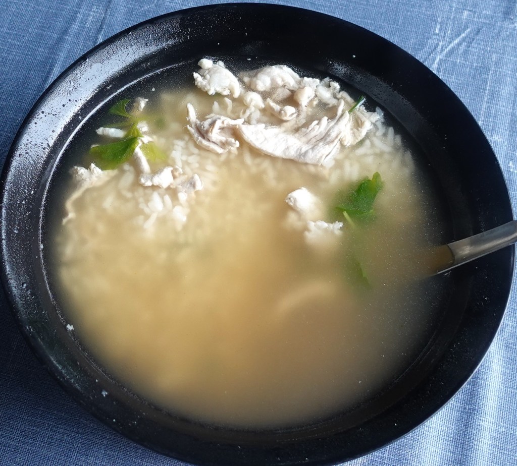 お粥「カオトム」とスープとお椀