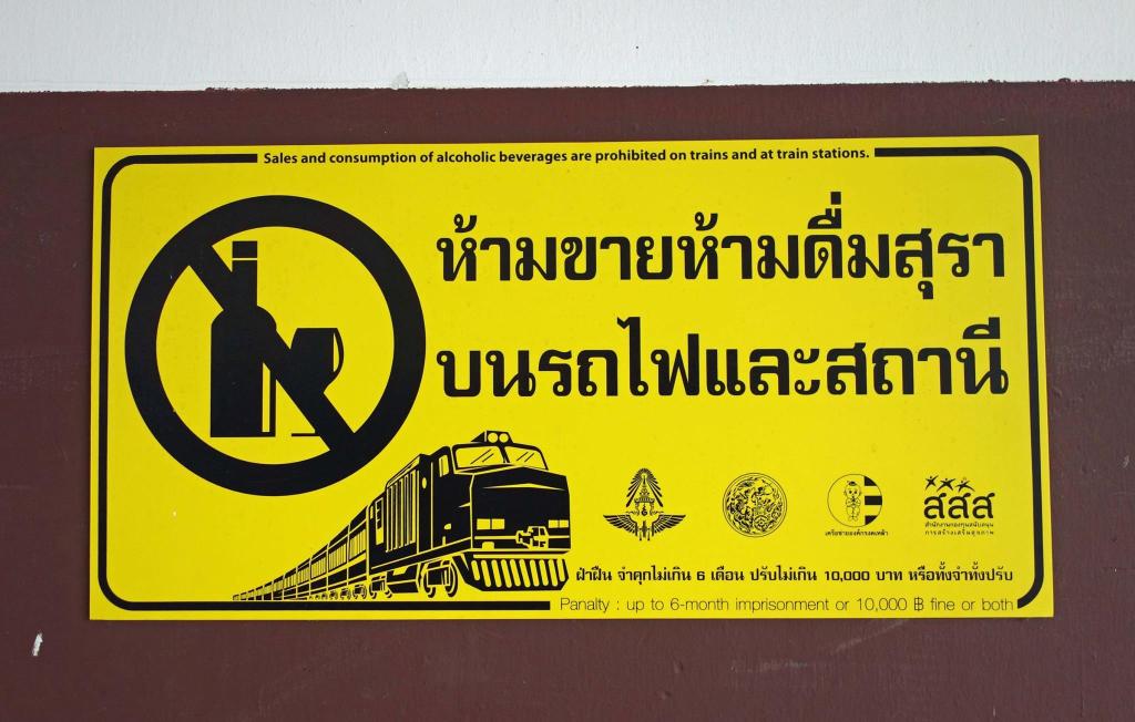 2014年に寝台列車内で少女がレイプ殺害され、窓から投棄されるという痛ましい事件があってから、列車内での飲酒がいっさい禁止になった。 違反者には最高6ヵ月の懲役または10,000バーツの罰金、またはその両方が科せられるようになった