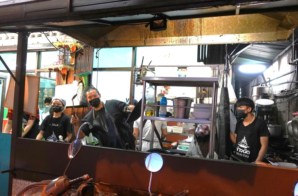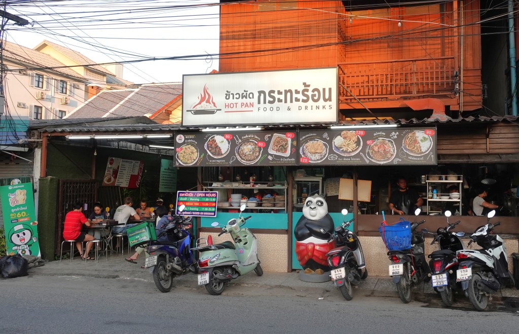 鉄板炒飯専門店 ข้าวผัดกระทะร้อน「カオパット・ガタローン」チェンマイ 店頭にはパンダがいる