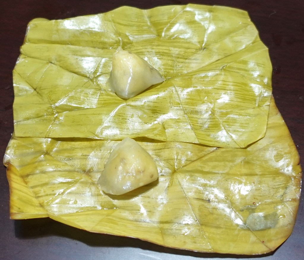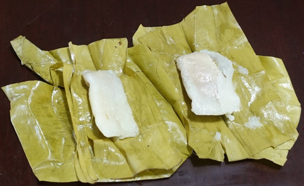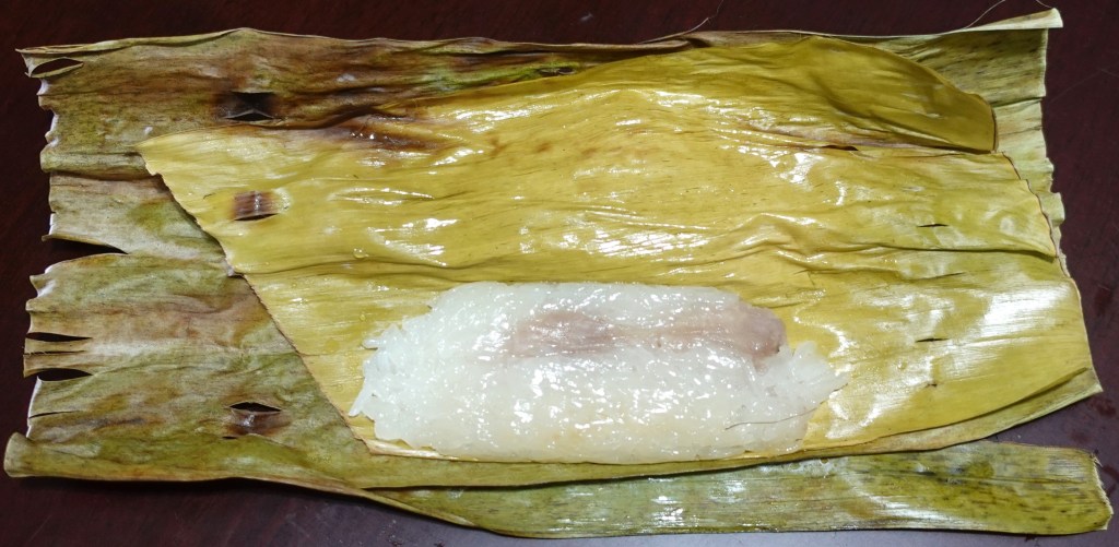 「アブムー」แอ๊บหมู 上の画像のバナナの葉を開いたところ