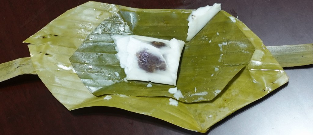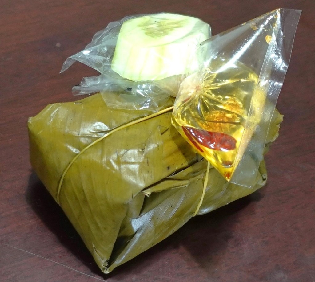 素敵な女性がバナナの葉に包まれた「食べ物」を販売していた。おそらくお客は朝食として買っていくのだろう。または買って職場でランチにするのかも