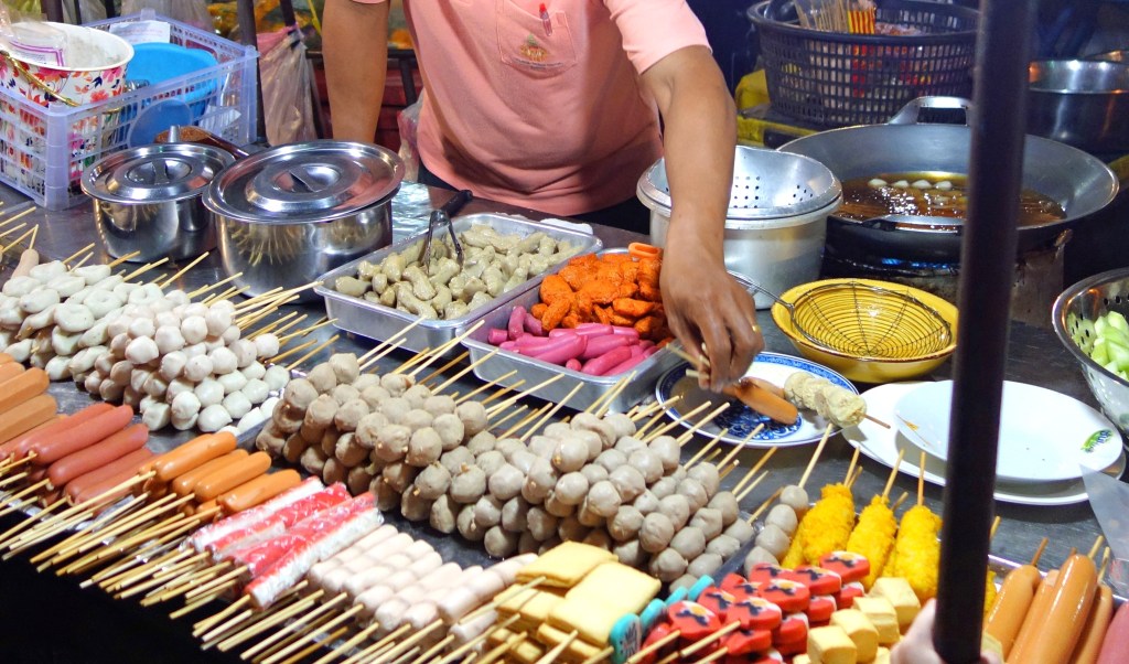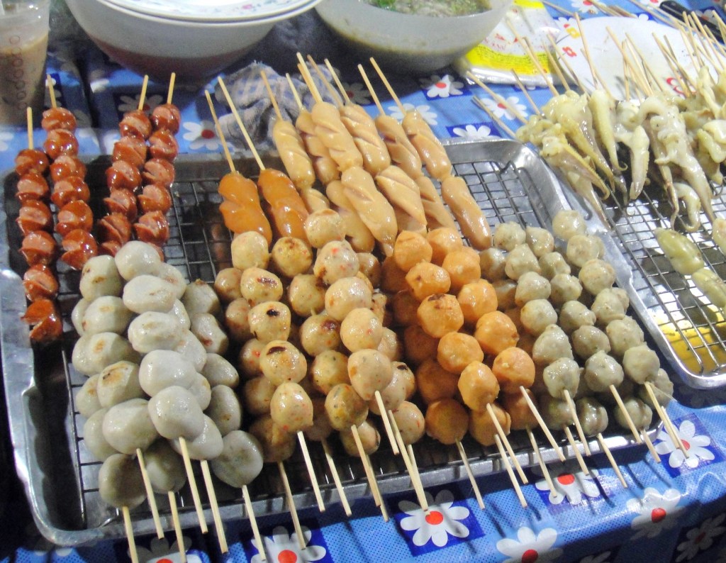ここの屋台の串刺しにしたルークチンは油で「揚げ」ていた