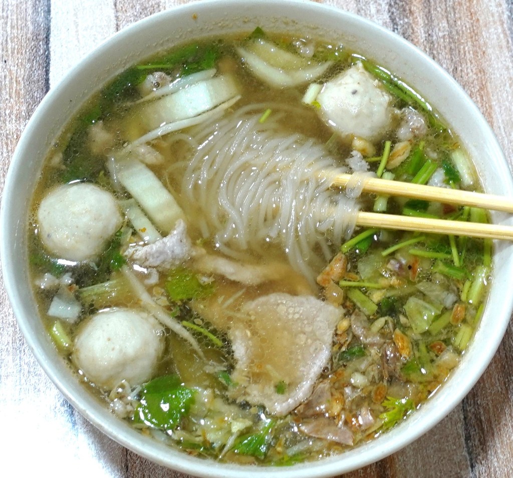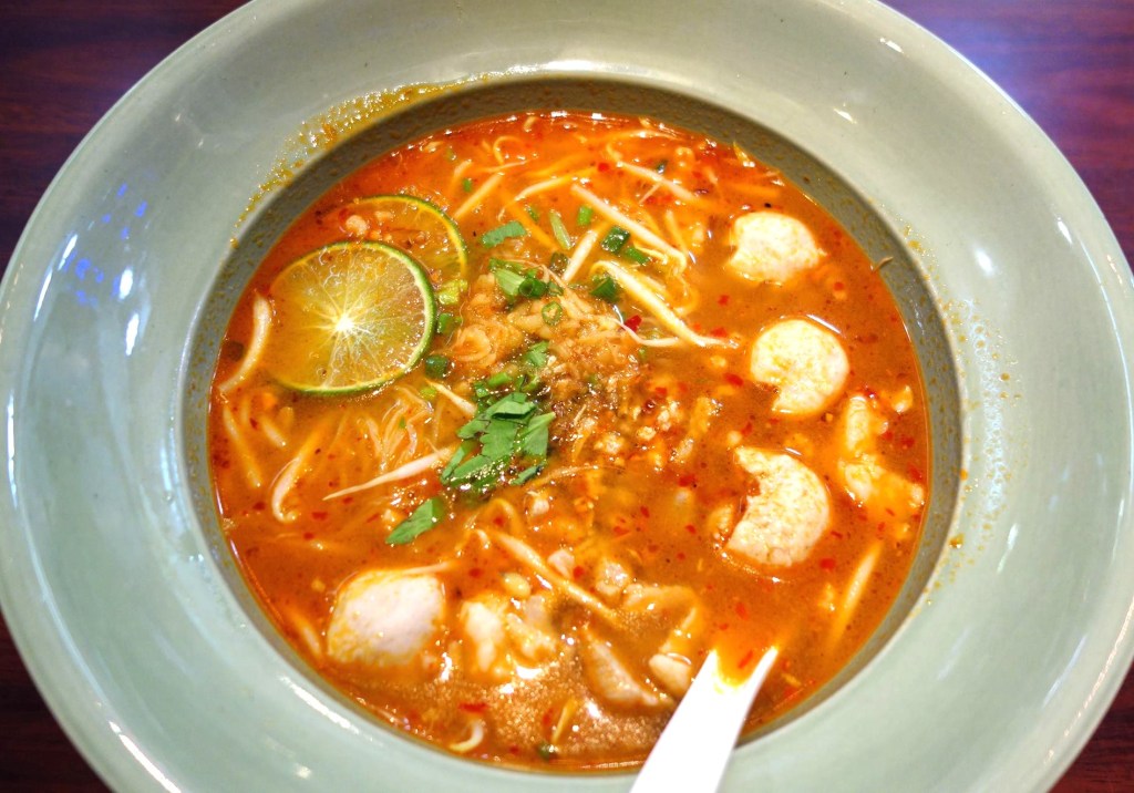 バーミーナームトムヤムルークチン 辛くて酸っぱいスープと共に「煮込まれた」ルークチン