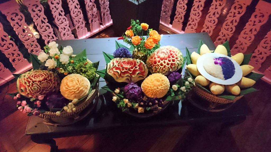 タイ料理に添えるカービングは、彩りを添えるだけでなく、「あなたを心から歓迎しています」というタイならではのおもてなしの表現である。しかしある一定レベル以上のタイレストランでないと味わうことはできない。安価な食堂でも食材の切り方に拘りを見せる食堂はある。
