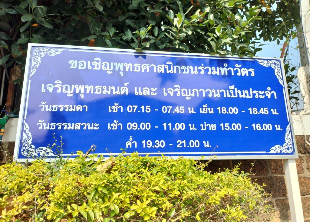 ワット・サンティタムの表札が寺院入口の右側に立っている