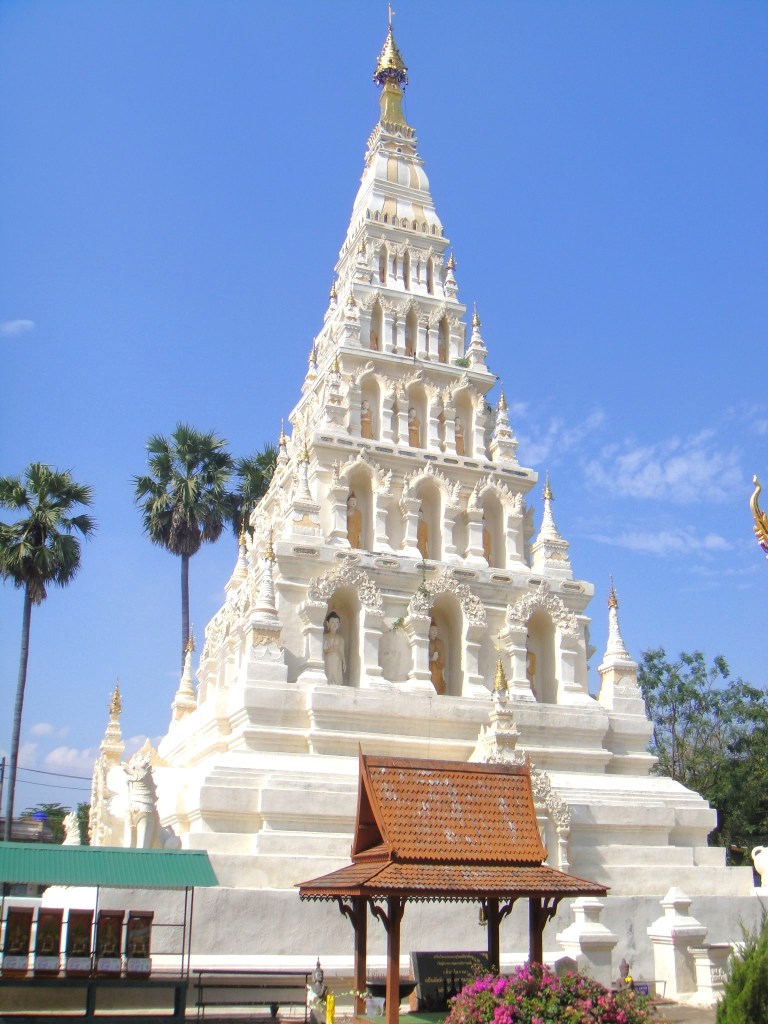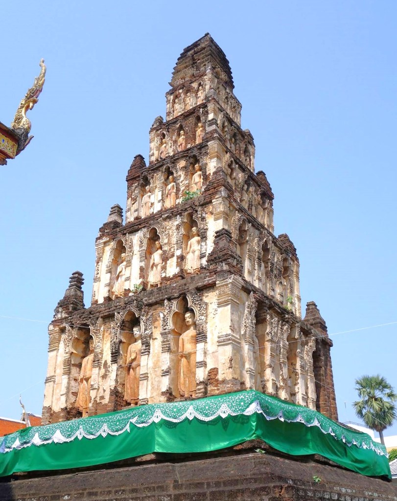 ワット・サンティタムで最も興味深いのは、仏塔が四角錐形をした5層構造で各層に3つの仏龕(小室)を有する点である。