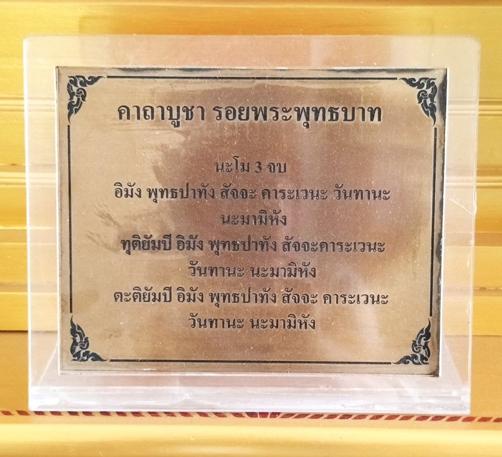 仏陀の足跡の下に、仏陀の足跡を拝むときのお経が記されている