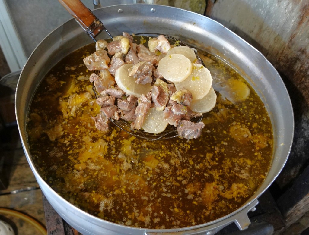 入店したら先ず手を洗うことから始まる。お店の主人がお鍋の料理を丁寧に見せてくれた。