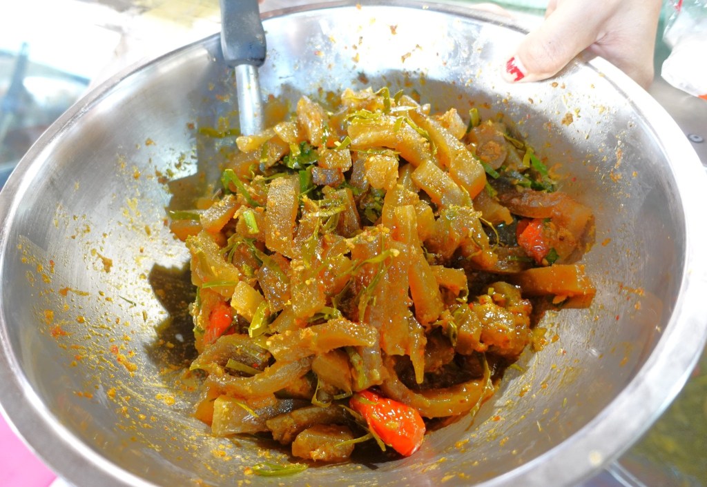 「ヤムナン」ยำหนัง 水牛の皮の和え物 水牛の皮を長時間煮込むという