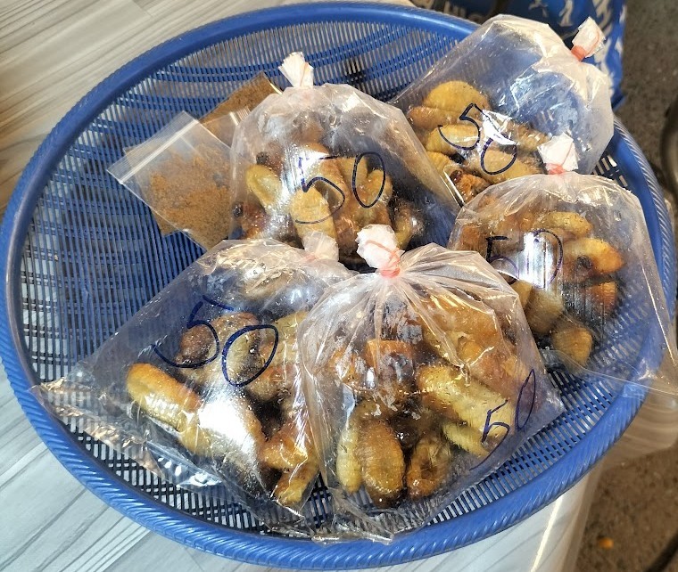 ワットチェディルアンのお祭り揚げ虫屋台で「揚げヤシオオオサゾウムシ」を食べた ⇩⇩