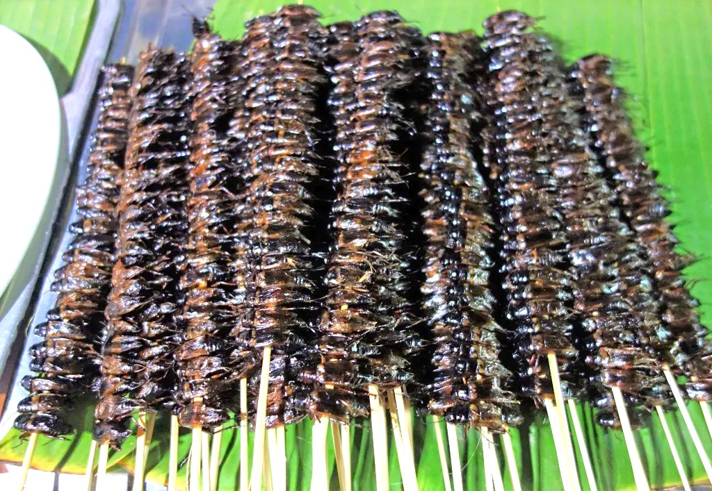 日本では見かけない「虫の串焼き」が、焼き鳥屋とか居酒屋にあったらどうだろう。