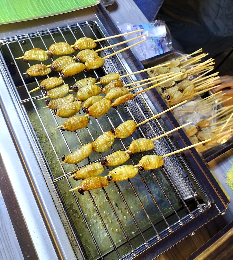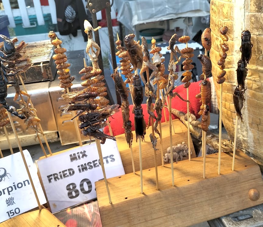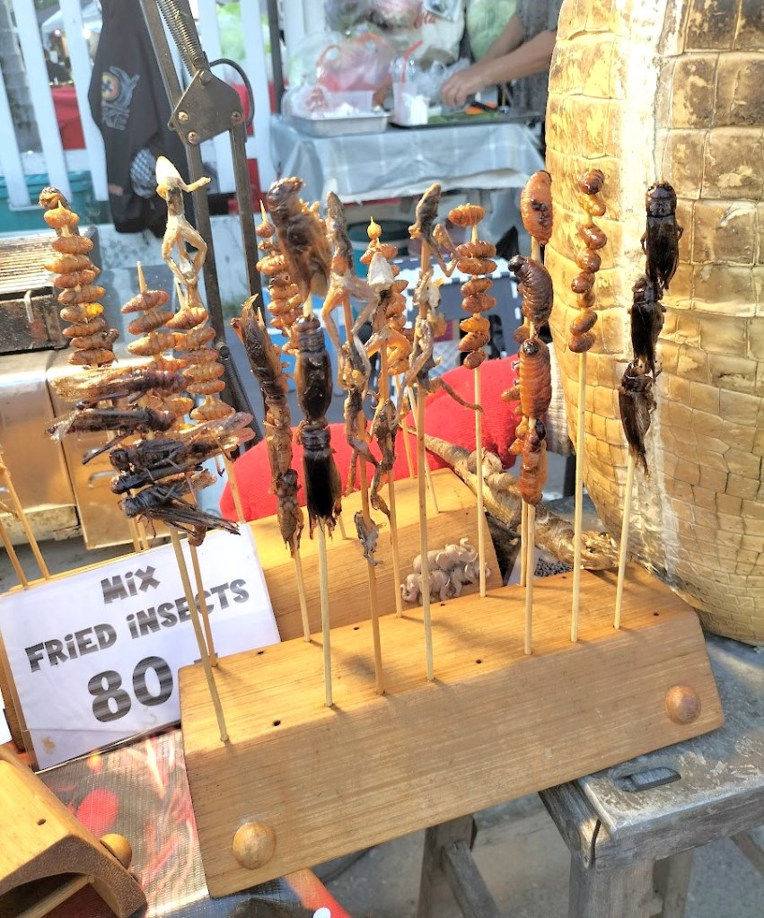 チェンマイのサンデーナイトマーケットで昆虫の串焼きを発見
