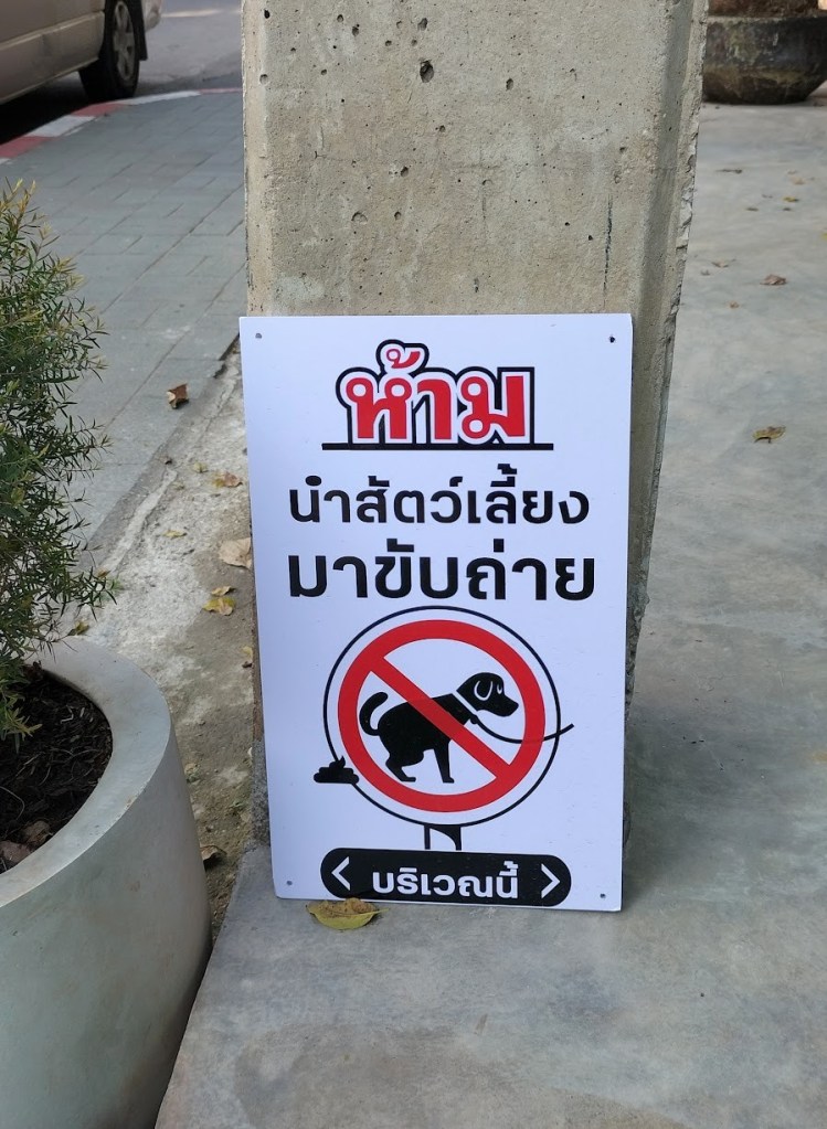 チェンマイの街を歩いているとイヌの排泄禁止の標識を見かけるが、ネコの標識は見たことがない。しかしイヌは標識が分かるのかな(笑) ネコは茂みに隠れて用を足すので必要ないのかも…