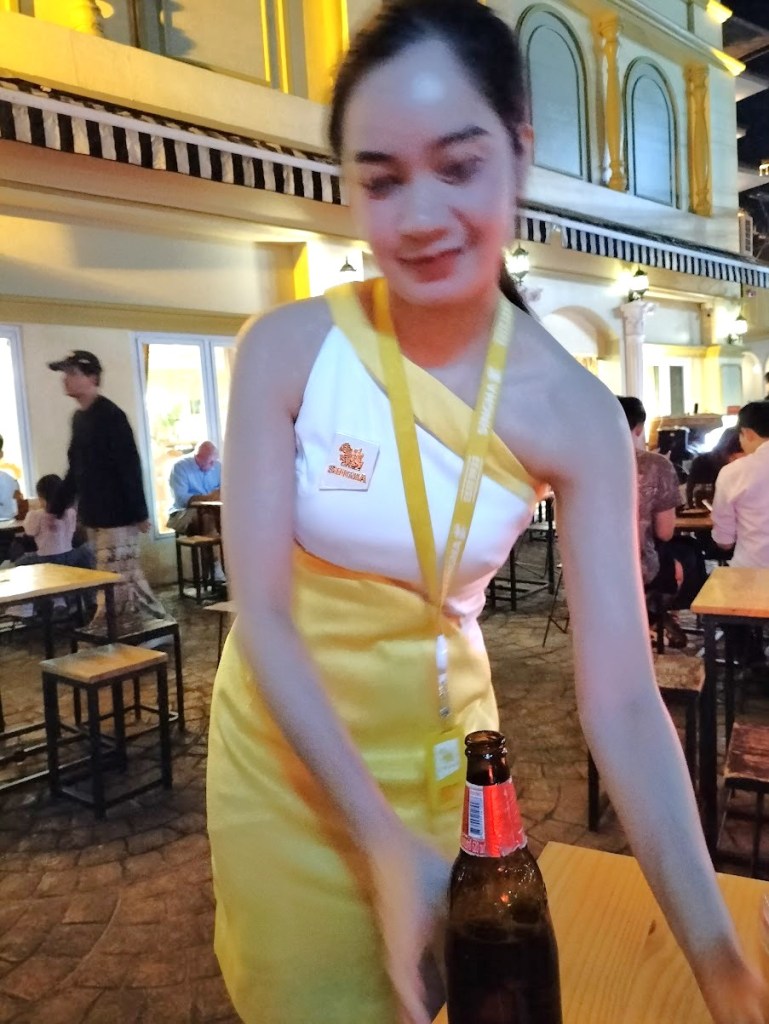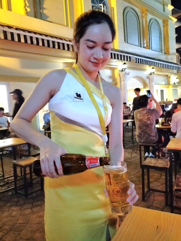 ビールを注ぐとき肩の線が傾いている チェンマイ