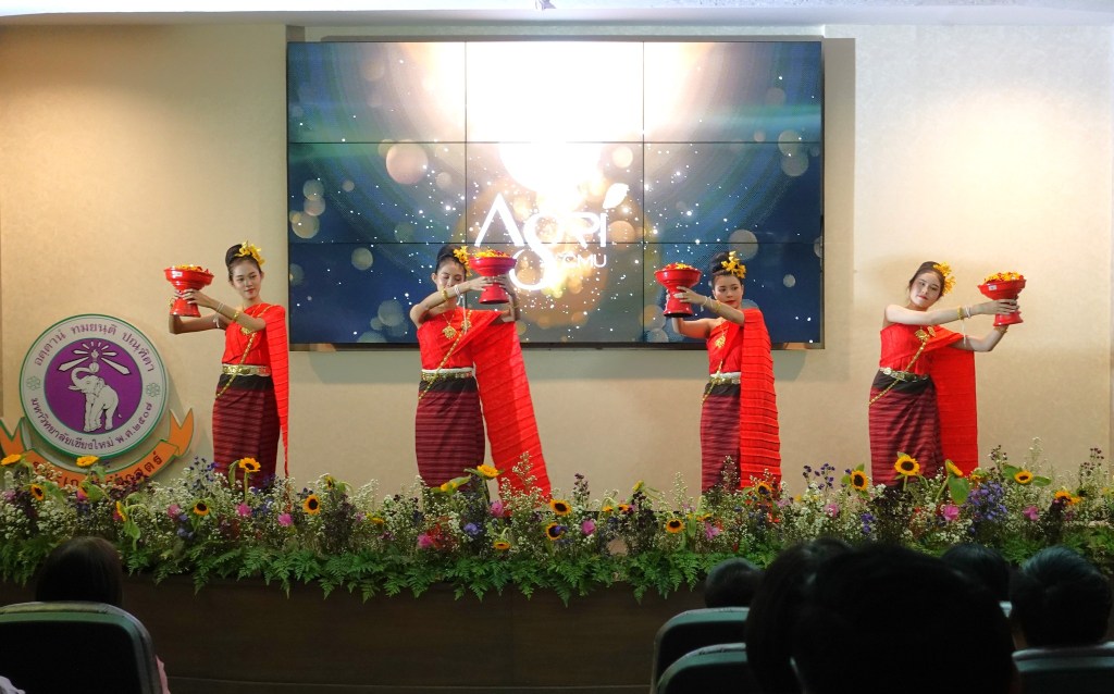チェンマイ大学農学部の退官式で学生たちが感謝を込めて北タイの伝統舞踊を優雅に披露した