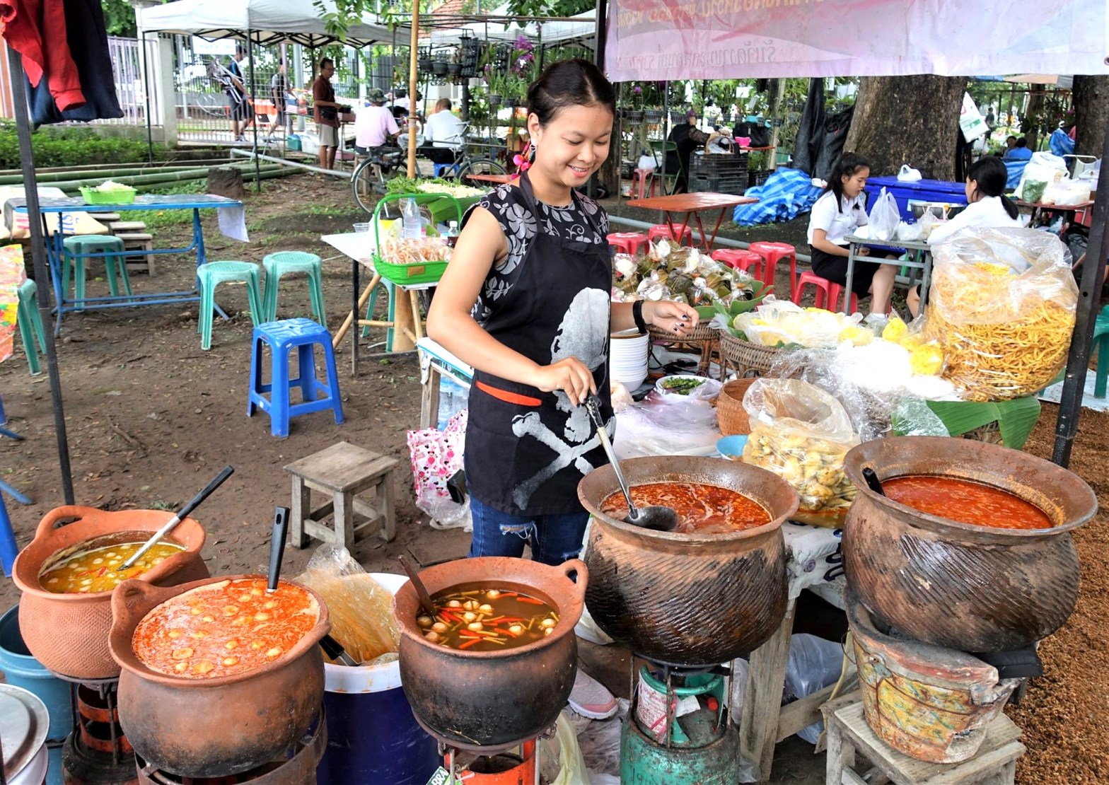 チェンマイ大学構内に立つ市に「昆虫屋台」