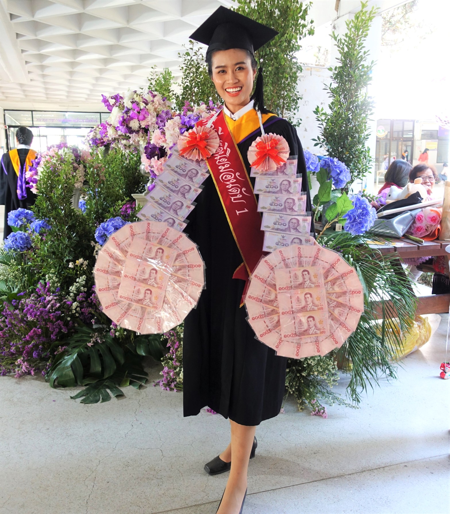 チェンマイ大学の卒業式です。ここには日本とは大きく異なった文化がありました。卒業生は角帽をかぶりガウンを羽織ります。ガウンの襟は学部によって色が違いますが、黄色は農学部です。さらにすごいのは、お札をつなげたものを身にまと続きを読む “両親に祝福されて卒業します”